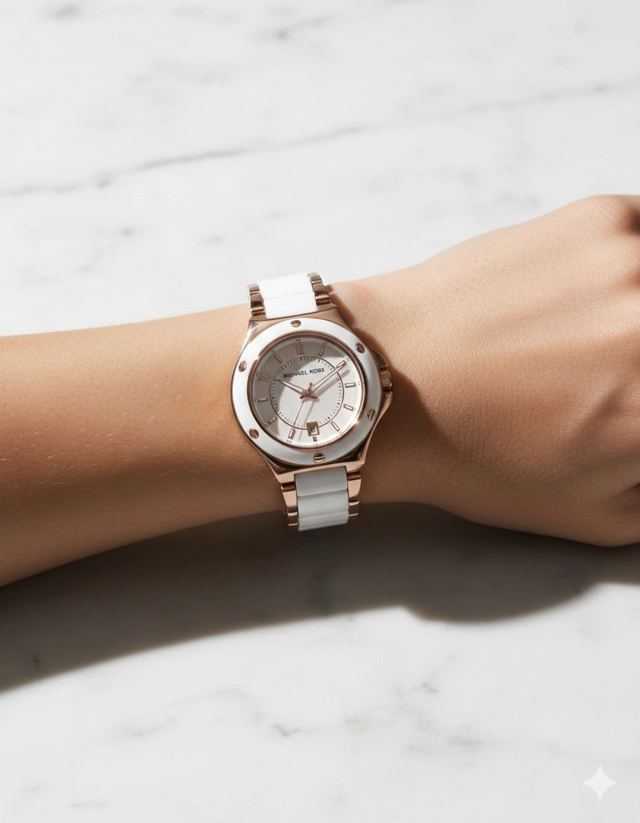 The Michael Kors MK5261 is a refined women’s watch that blends classic design with modern sophistication. Crafted in rose-tone stainless steel and finished with a clean white dial, it offers a feminine and elegant look suitable for both everyday wear and special occasions.